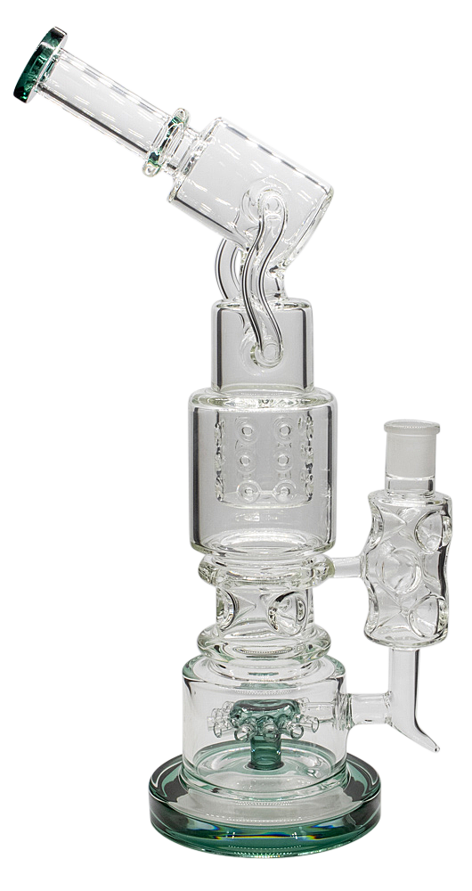Double Perc Water Pipe - GREEN LIP is backordered and will ship as soon as it is back in stock.